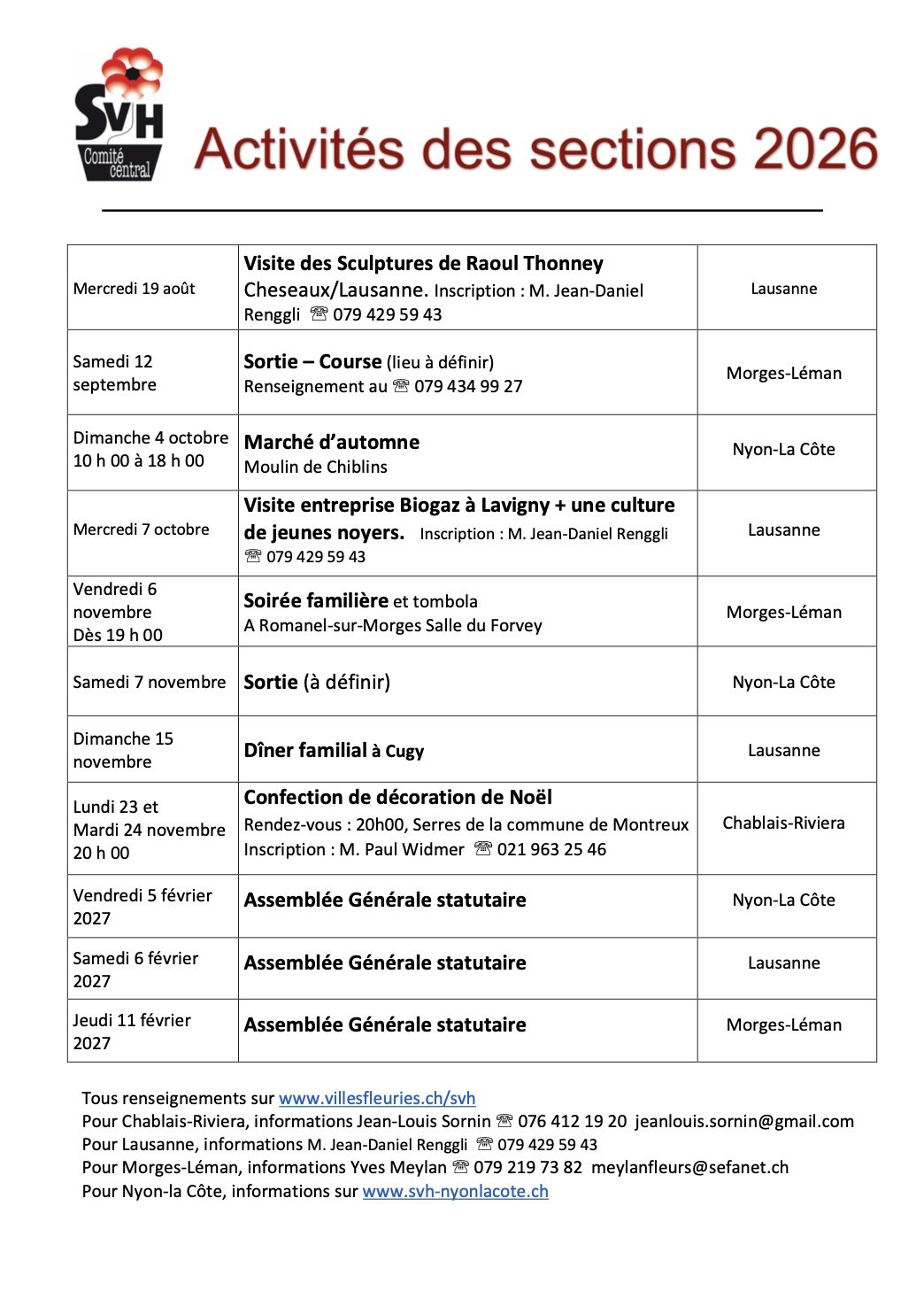 Pour Nyon-la-Côte, informations sur www.svh-nyonlacote.ch